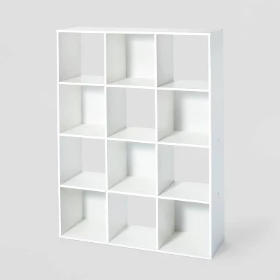 Room Essentials⢠‘ 12 Cube Organizer has 12 convenient cube openings for storage and is compatible with Room Essentials⢠11″ storage bins. Perfect for organizing any room in the house. This Room Essentials⢠12 Cube Organizer comes with all hardware included. To clean, wipe with a dry cloth.