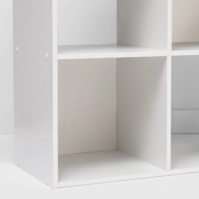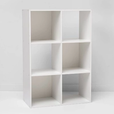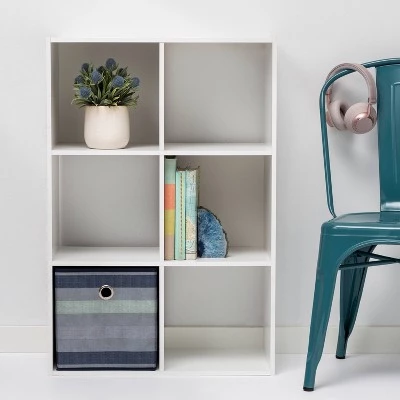 Give your traditional bookshelf a modern update with the 6 Cube Organizer Shelf from Room Essentials™. The cube openings are great for storage and compatible with 11″ storage bins. This item can be displayed horizontally or vertically and is stackable in horizontal orientation. Perfect for organizing any room in the home. This cube organizer shelf comes with all hardware included. To clean, wipe with a dry cloth.