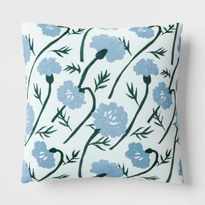 Freshen up your outdoor space with this Calendula Floral Square Outdoor Throw Pillow from Room Essentials™. This 17-inch square pillow is adorned with bright woven calendula print for garden-inspired vibes. Made of a recycled polyester-polypropylene blend with soft fill and equipped with UV-resistant properties, the throw pillow is great whether you choose to display it on your patio, deck or in the garden.