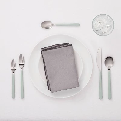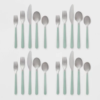 The whole family will love the retro look of this Stainless Steel Plastic-Handle Silverware Set from Room Essentials™. This silverware set with light-green plastic handles comes with service for four, including four each of dinner forks, salad forks, knives, dinner spoons and teaspoons to meet all your serving needs for everyday family dinners or hosting a dinner party. These stainless steel utensils have a simple design that easily blends with your existing table settings.