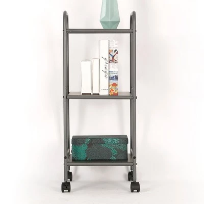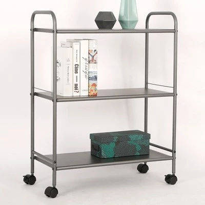 Perfect for both home and office use, the Three-Shelf Utility Storage Cart from Room Essentials⢠will help you organize books or files and showcase plants, decorative items and photos in functional style. With a simple design you’ll love, this portable utility shelf is made using long-lasting steel. Wheels allow you to easily move it from one place to another, while the open design makes it easy to see what you have on display. Use this gray utility shelf in any part of your space for a sleek and simple storage solution.
