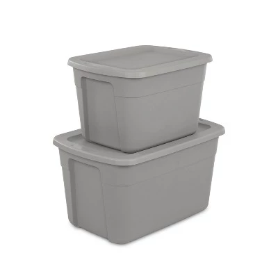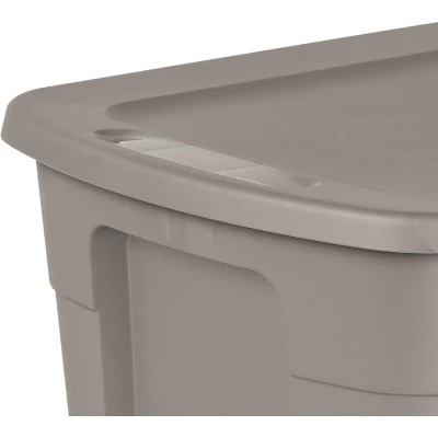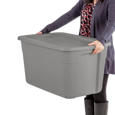 Get organized with Room Essentials’s 30 Gallon Tote. This popular size tote is ideal for a variety of basic and lightweight household needs, such as sorting and storing away bedding, sporting gear, seasonal decorations and other large, bulky items! The lid snaps tightly to the base, keeping contents contained and concealed. The contoured end panels and in molded handles provide a comfortable grip for lifting and carrying, making transporting the tote easier, whether moving into a dorm or storing away belongings in the attic or basement. The indexed surface of the lid allows totes to stack neatly on top of each other for efficient use of vertical storage space. When storing items away, use good judgment and don’t overload them or stack them too high; be mindful of the weight in each tote and place the heaviest tote on the bottom. The classic styling offers a refreshing, clean, and coordinated look. The overall assembled dimensions of this item are 30 1/2″ L x 20 1/4″ W x 16 5/8″ H.