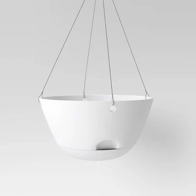 Create a beautiful green oasis on your deck or patio with the help of this 12-Inch Hanging Self-Watering Planter from Room Essentials™. With a clever and convenient design that waters plant roots from the bottom, this lightweight round planter helps take the guesswork out of watering by simply filling the reservoir in the bottom for plants to absorb from above. The hanging design features four support wires and a top hook, making it easy to add a houseplant and hang from the ceiling in a variety of spaces around your home.