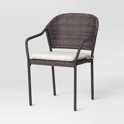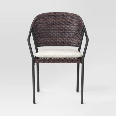 This 3-Piece Wicker Bistro Set with Cushions from Room Essentials⢠is ideal for an impromptu dinner under the stars or working from home on your patio. This all-weather bistro set comes with a square table and two armchairs with wicker seats and backrests. Plus, it comes with two chair cushions for extra comfort. The compact outdoor set is made from steel, and the table has a tempered glass top for modern style.