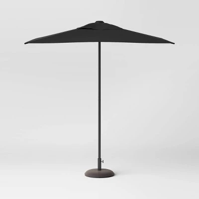 The umbrella provided with this set must be used with an umbrella stand, which can be purchased separately. A base with a standard 1.5″ diameter should accommodate this umbrella nicely. The Concrete Umbrella Base Black – Threshold™ and the Granite Umbrella Base – Black – Threshold™ are frequently purchased with this set.