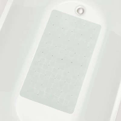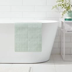 Add comfort and style to your bath space with this Bath Mat from Room Essentialsā¢. This mint green bath mat showcases an allover square pattern to add a soft and eye-catching look to your bath space. Made with rubber, this rectangle bath mat comes with a lightweight design and blends well with a variety of bathroom decor styles.