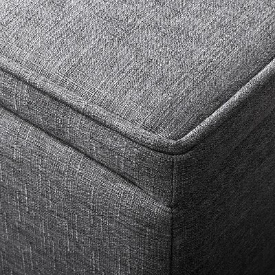 Keep your storage solutions functional and comfortable with this Double Storage Ottoman from Room Essentials™. Made with a wooden frame, this rectangle ottoman features a padded seat in a textured gray finish to add striking appeal to your home. This ottoman will match just about any existing decor, and it makes a great decorative accent anywhere you place it. Use it in the living room as a footrest and a spot to store blankets and pillows, or keep it in your entryway as a comfortable place to sit while you slip on your shoes.