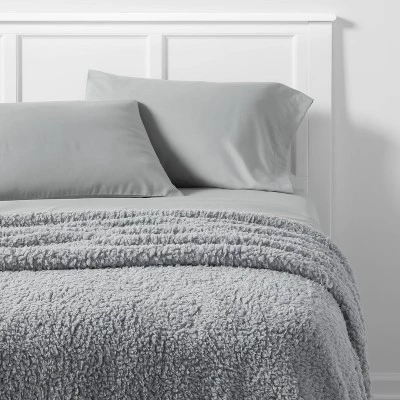 Finish off your bedding collection with the simple, comfortable style of the Sherpa Bed Blanket from Room Essentials™. Made from plush sherpa fabric for a combination of soft comfort and cozy coverage, this blanket makes a convenient addition to your bedding, with the solid-color design incorporating easily with a variety of color palettes and patterns. Pair with a complementary plush pillow for a cohesive bedding set that helps you stay comfortable throughout the night.