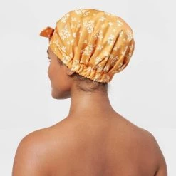 Keep your hair dry in the shower with this Floral Shower Cap from Room Essentialsā¢. Made from a lightweight fabric, this shower cap feels soft against your hair. It features shirred elastic at the back that helps it comfortably slide on your head without tugging or pulling hair. Showcasing tiny white flowers on a yellow background, it features a bow accent on the front for cute style.