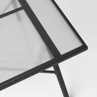 Create a beautiful outdoor dining setup for get-togethers with this 6-Person Patio Dining Table from Room Essentialsā¢. Made with a weather-resistant metal frame to withstand the outdoor elements, this patio dining table features a glass rectangular tabletop with four pointed legs for an appealing look that accommodates up to six people.Ā Plus, it comes with an umbrella hole to help provide a little shade when needed.
