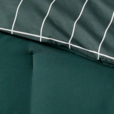 Adorn your sleeping quarters with this cool and comfy 5-Piece Grid Print Microfiber Reversible Comforter & Sheet Set from Room Essentials™. This twin extra-long bedding set includes a microfiber comforter, pillow sham, pillowcase, flat sheet and fitted sheet for a coordinated look. The bedding set features an allover grid pattern for a cool look, and it reverses to a solid hue to instantly change the look of your space. For added convenience, the multi-piece comforter bedding set boasts a lightweight and breathable fabric for year-round use and is machine washable.