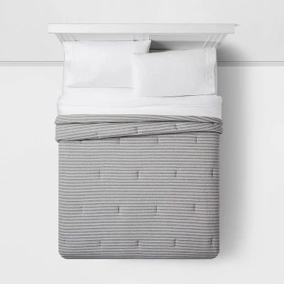 Instantly update the look of your bedroom with the Jersey Comforter from Room Essentials™. This bed comforter comes with mid-weight jersey fabric for comfortable use during warmer weather, and can be layered over additional fleece blankets to keep you cozy in the winter. Add matching shams to create a cohesive, polished look, or go for bright or embellished ones to show off your personal style.