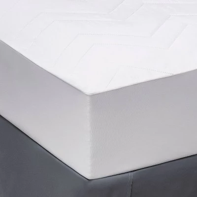 Get restful sleep with this Mattress Pad from Room Essentials™. Protecting your mattress and providing extra comfort, this soft mattress pad is essential for any bed. The solid white color stays concealed under your fitted sheet, so you can layer it with any type of colored or patterned linens you choose. The microfiber construction provides breathability so you stay comfortable all night long, and it’s machine-washable to make cleaning a breeze.