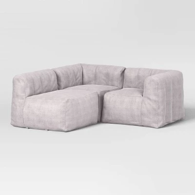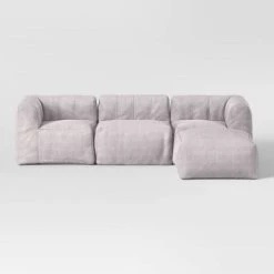 Enjoy get-togethers with family or friends in a comfy, modern style with this Modular Sectional Sofa from Room Essentials™. This sectional sofa set comes complete with a corner seat, an armless seat and an ottoman to create a complete ensemble. Made with a soft fabric exterior, this sectional sofa provides the perfect spot for enjoying a refreshing drink and chatting with friends or watching your favorite sitcom on TV. In a solid gray hue, the sofa blends easily with a range of decor styles and color palettes.