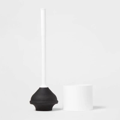 Easily unclog toilets in your home with the help of this Plunger from Room Essentials™. Made from BPA-free plastic, this toilet plunger is designed with a suction cup to easily pull out the blockage and dislodge the waste material. Showcasing a sleek design in white with a black plunger head, this toilet plunger comes with a white holder for discreet storing in a cabinet or corner in your bathroom.