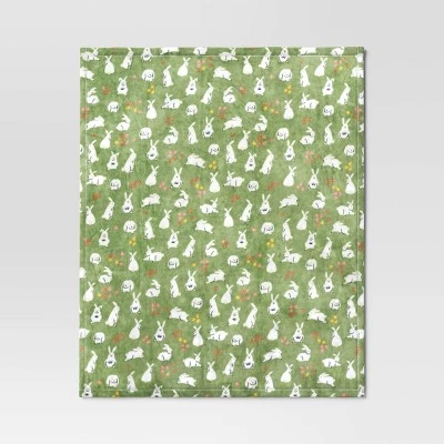 Add a cozy layer to your indoor seating with this Printed Plush Bunny Easter Throw Blanket from Room Essentialsā¢. Neatly finished with hemmed edging, this plush throw blanket features a playful print of white bunnies along with colorful florals on a green backdrop for a sweet seasonal look. Made from super-soft plush material, this midweight blanket is both cozy and comfortable to use. Drape it over the back of your sofa, lounger or armchair to snuggle up in comfort.