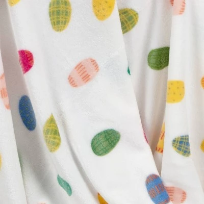 Add extra warmth to any setting with this Printed Plush Easter Eggs Throw Blanket from Room Essentialsā¢. Neatly finished with hemmed edging, this plush throw blanket features a colorful print of Easter eggs on a white backdrop for a playful seasonal look. Made from super-soft plush material, this midweight blanket is both cozy and comfortable to use. Drape it over the back of your sofa, lounger or armchair to snuggle up in comfort.