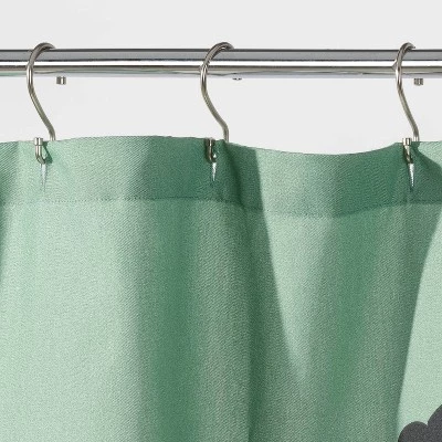 Add a contemporary aesthetic to your bath space with this Puffs Shower Curtain from Room Essentials™. Made of a year-round fabric, the green shower curtain showcases an oversized illustration of a woman with double buns and aqua-color shades to beautifully enclose a bathtub or shower stall for added privacy with a playful vibe. The decorative shower curtain features a buttonhole top for easy installation, and is machine washable for a quick refresh whenever needed.