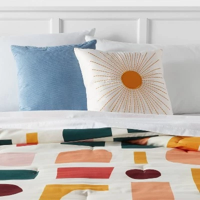 Amp up your seating nook or bed with this Satin Square Decorative Pillow from Room Essentials™. Boasting a satin construction that feels soft to the touch, this decorative throw pillow also features a soft fill for comfortable sitting and lounging experience. Showcasing a stitched sun graphic on the front for charming appeal, this square decorative pillow looks great anywhere in your home, whether adding a fun touch to your living room or completing your restful retreat.