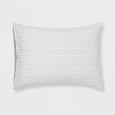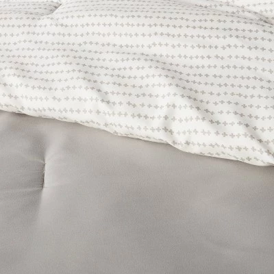 Give an elegant update to your bedroom ensemble with this Solid Microfiber Comforter & Sheets Set from Room Essentials™. The comforter features patterned stripes on a white background that reverses to a solid color on the other side, making for a striking and easy-to-switch-up look that’s perfect for any bedroom decor. The five-piece bedding set also includes a flat sheet and fitted sheet with coordinating stripes, along with a matching pillowcase and pillow sham with stripes or a solid-color design.