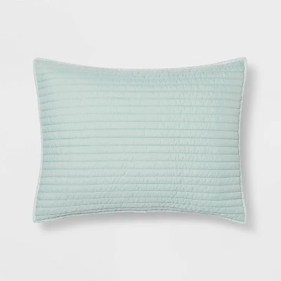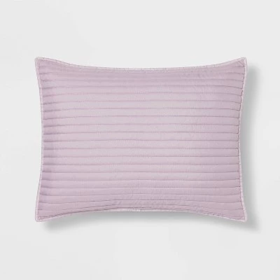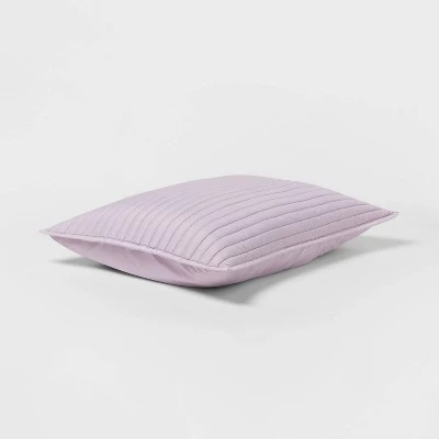 Bring a cozy, chic appeal to your bed with this Standard Garment Washed Microfiber Quilt Sham from Room Essentials™ . This pillow sham makes a great addition to your bedding ensemble. It features a stitched striped design for contemporary texture, and a solid color to match any aesthetic. The quilted pillowcase offers a soft and cozy touch to your sleep space, and comes with a six-inch inner envelope closure to keep the insert neatly tucked in. Pair with a matching quilt to complete the coordinated set.