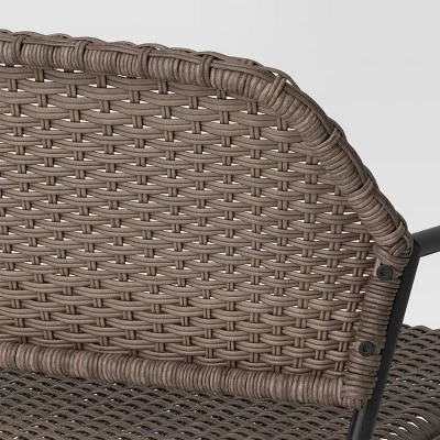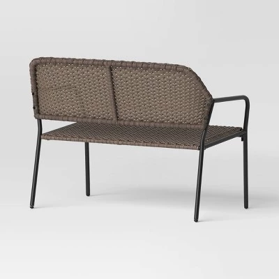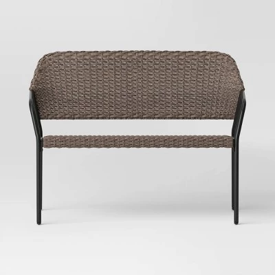 Bring classic style and inviting seating to your outdoor space with this Steel & Wicker Patio Garden Bench from Room Essentialsā¢. The garden bench features a sleek design with a woven wicker design on the seat and back, providing comfortable seating for two that will instantly upgrade your outdoor entertaining space. It boasts a weather- and rust-resistant steel frame to stand up to the elements, while the solid black finish blends well with any decor style. Coordinate it with a coffee table to transform the look and feel of your outdoor seating nook.