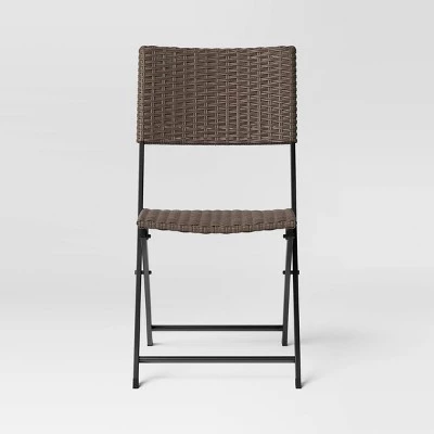 Create a comfy spot to settle in and enjoy your outdoor space with this 4-Piece Wicker Folding Portable Camp Chair from Room Essentials™. The portable camp chairs feature woven wicker detailing on the seat and back to provide a comfortable spot to rest and relax, while the metal frame is finished with weather- and rust-resistant qualities to keep it looking great longer. Plus, its convenient foldable design lets you fold it away for easy storage. Just add a coordinating side table so you have a place to put drinks and snacks while you enjoy your outdoor oasis.